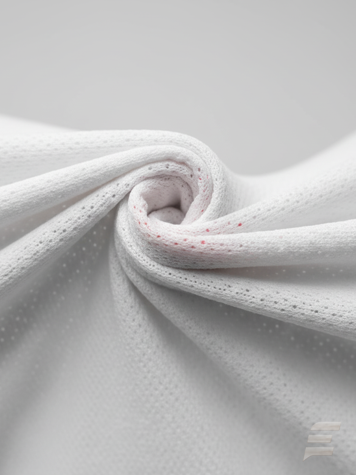 Ele absorve e transporta a umidade para fora da fibra, onde evapora rapidamente, mantendo o corpo seco e confortável mesmo sob alta intensidade.